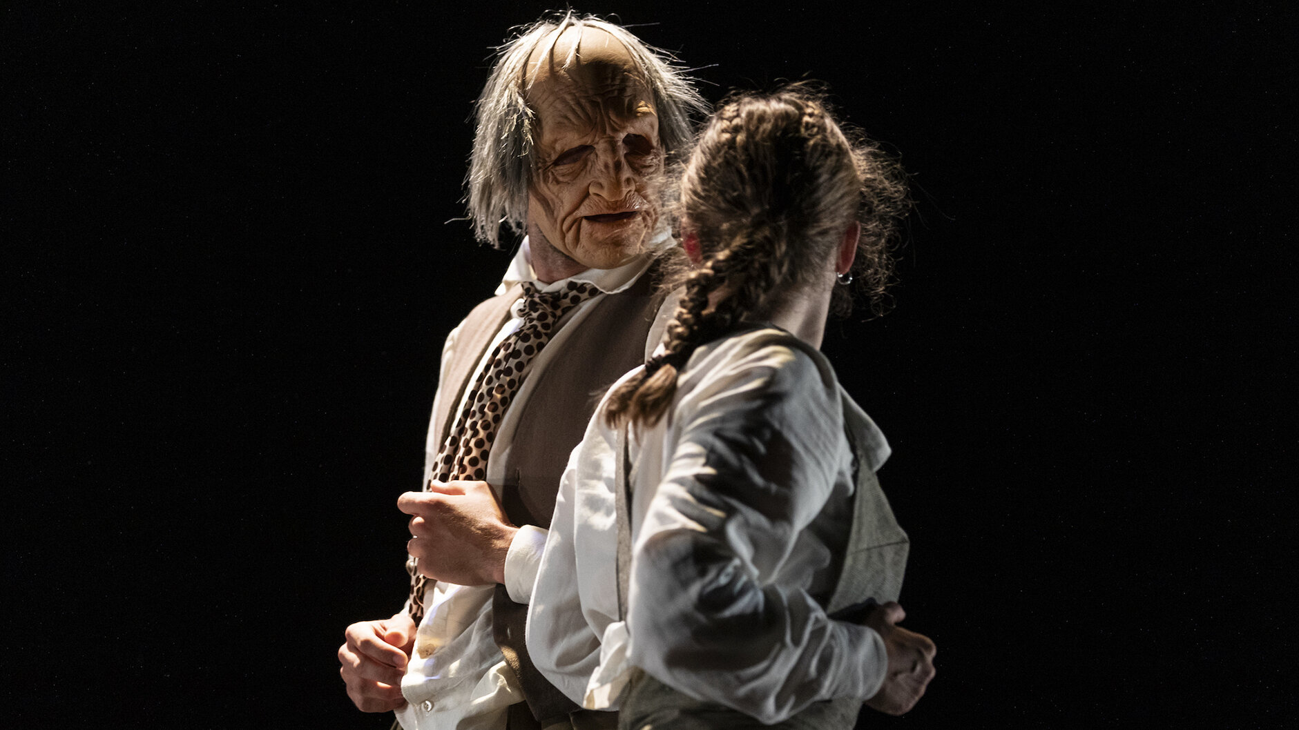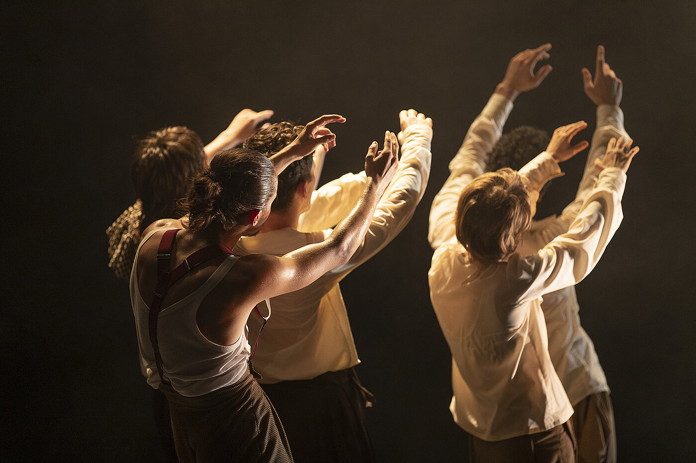 Durch die unfreiwillige Einsamkeit während der Corona-Jahre empfand die junge italienische Choreografin noch viel intensiver, wie ehrgeizig wir oft in die Zukunft planen oder wie hartnäckig wir an der Vergangenheit kleben – und wie selten wir mitten im Augenblick stehen. Genau nach diesem Leben im Jetzt suchen die jungen Körper unter den alten Köpfen, diese merkwürdigen Figuren wie aus einem fernen Land: Sie befreien sich von den Masken und den Erinnerungen, um in der körperlichen Empfindung des Tanzens eins mit sich selbst zu werden. Erst wenn wir uns selbst akzeptieren, fallen die Masken und wir sind offen für das Leben, für das Neue.