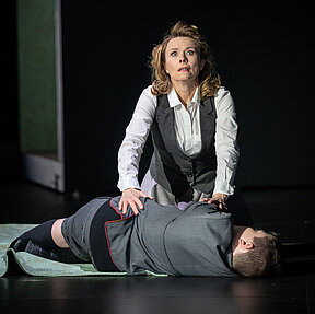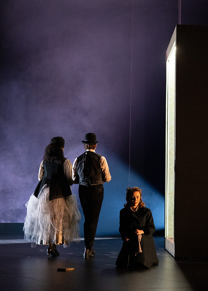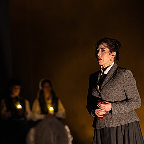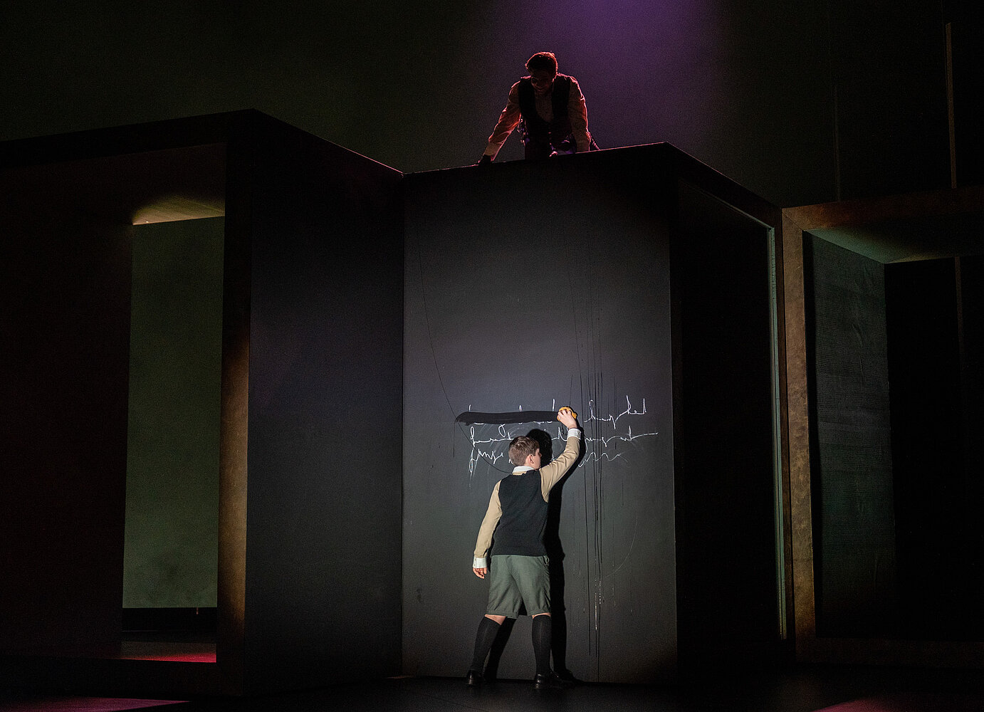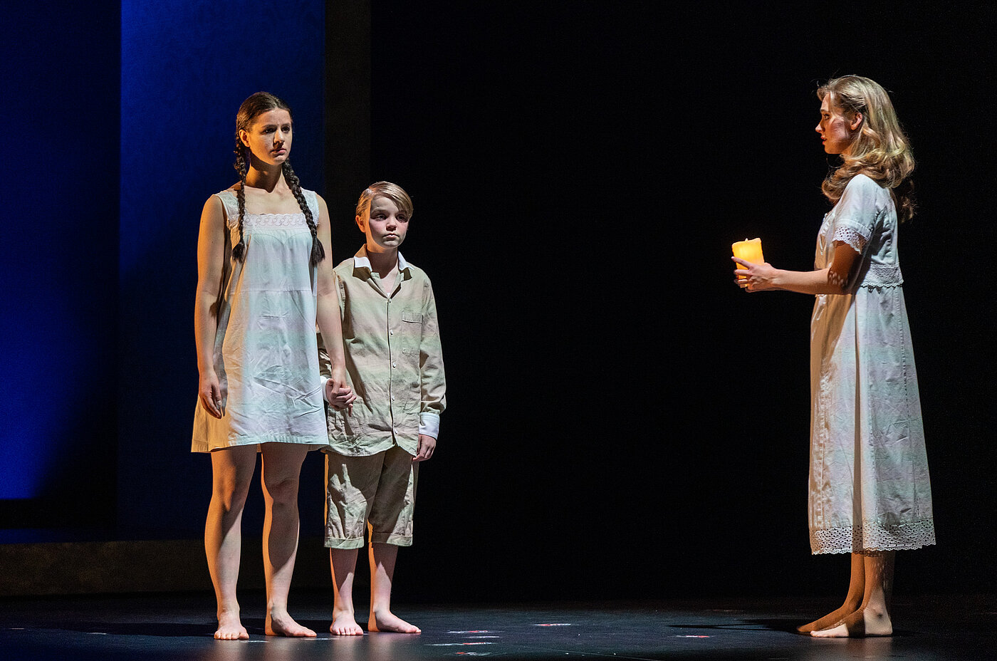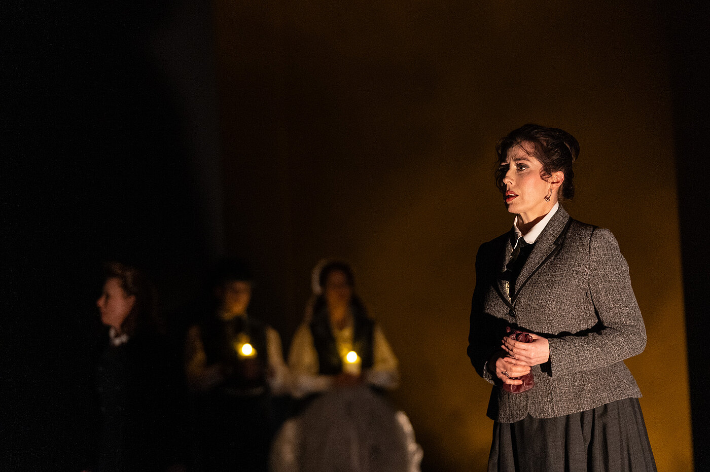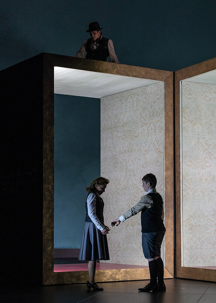 Eine Gouvernante reist auf ein englisches Landgut, um im Auftrag ihres Vormunds die beiden Kinder Miles und Flora zu erziehen. Bald stellt sich heraus, dass die beiden unter dem Einfluss zweier ehemaliger Angestellter stehen: Miss Jessel und Peter Quint waren einst ein Liebespaar und sind unter mysteriösen Umständen verstorben. Als Geister zurück, ergreifen sie mehr und mehr Besitz von den Kindern. Die Gouvernante und die Haushälterin, Mrs. Grose, nehmen den Kampf um die Kinder auf. Doch dann wird Miles der Schule verwiesen. Sind die Kinder doch nicht so unschuldig, wie es scheint? Als die Gouvernante unheimliche Erscheinungen sieht, verliert sie langsam das Gefühl dafür, was wahr ist und was nicht. Die ebenso rätselhafte wie eindrucksvolle Kammeroper spiegelt in ihrer zersplitterten Struktur die scheinbar fragmentarischen und womöglich verzerrten Wahrnehmungen der Protagonistin wider. Jede Szene wirft ein anderes Licht auf das Geschehen, das sich aus der Perspektive der Gouvernante nicht zu einem homogenen Ganzen zusammenfügen lässt, sondern vielmehr wie ein Puzzle mit fehlenden Teilen erscheint.