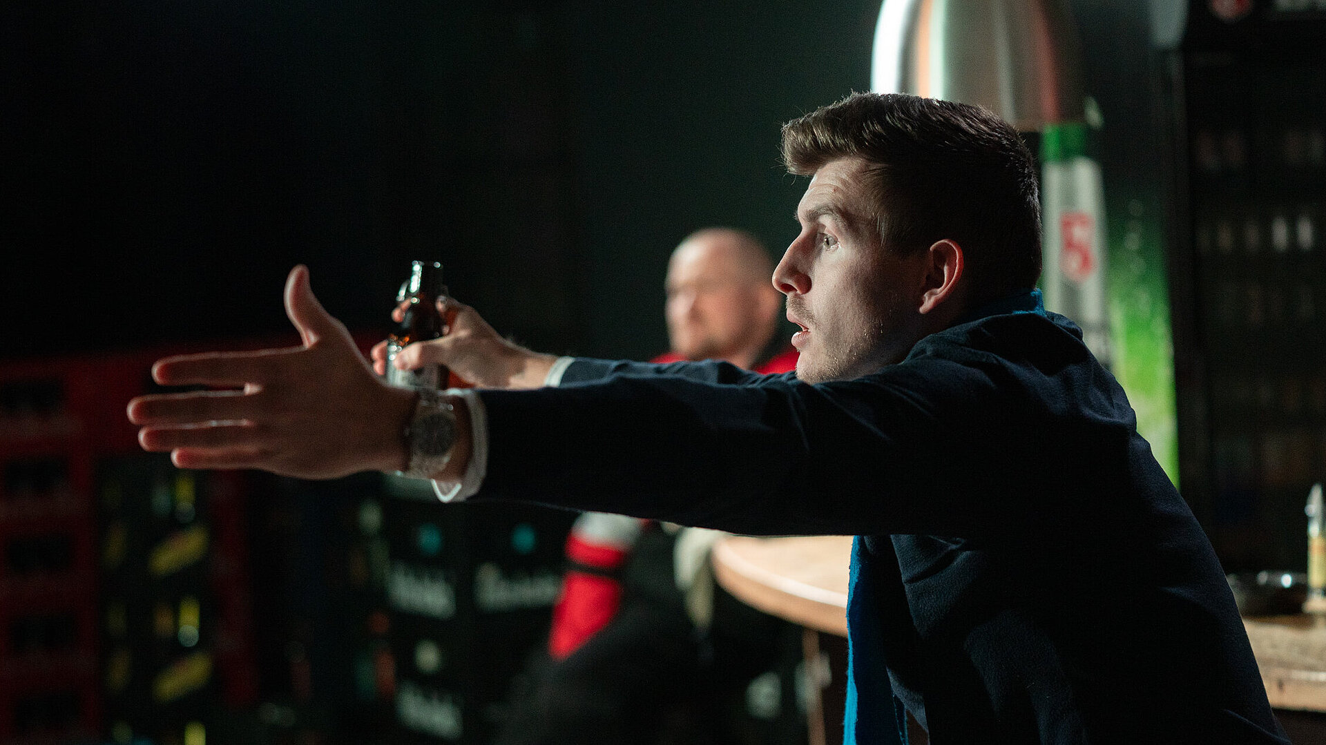 Ein ganz normaler Abend in einer ruhigen Bar: Ein Gast wartet auf sein Date, der andere auf das nächste Bier. Die beiden und der Barkeeper kommen ins Gespräch, reden über Frauen, Arbeit, Geld und Fußball. Über was auch sonst? Und nach dem einen oder anderen Schnaps stellt sich heraus, dass die drei sich nicht zufällig dort getroffen haben.