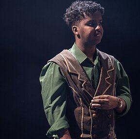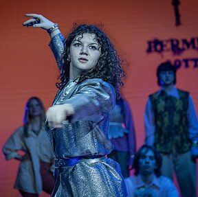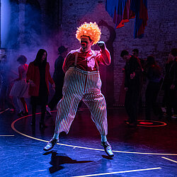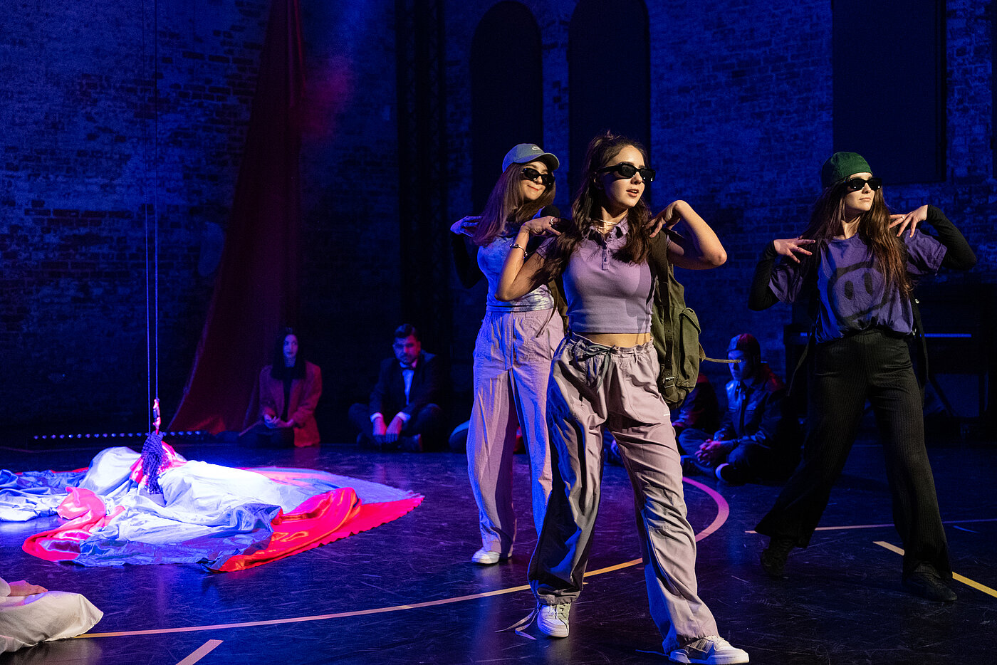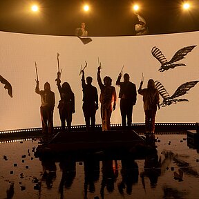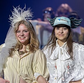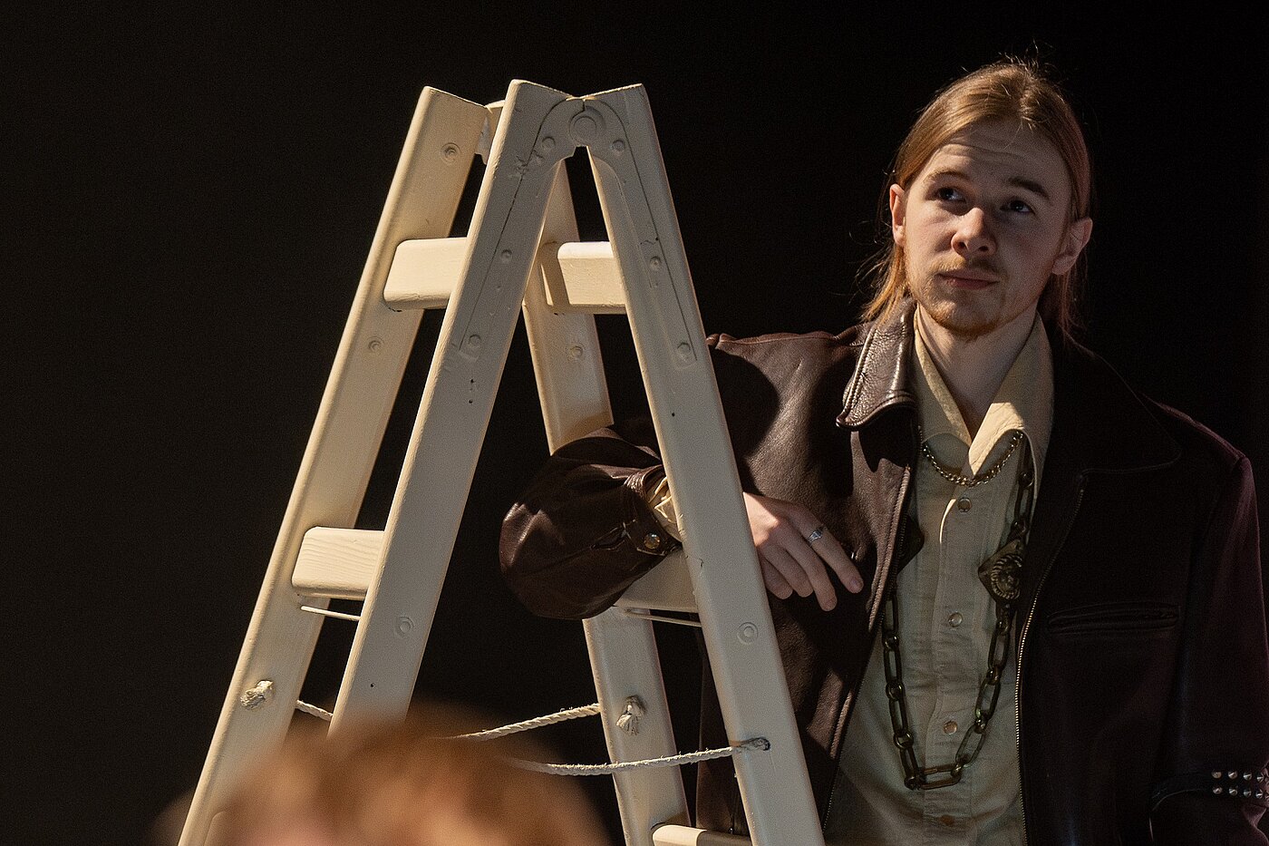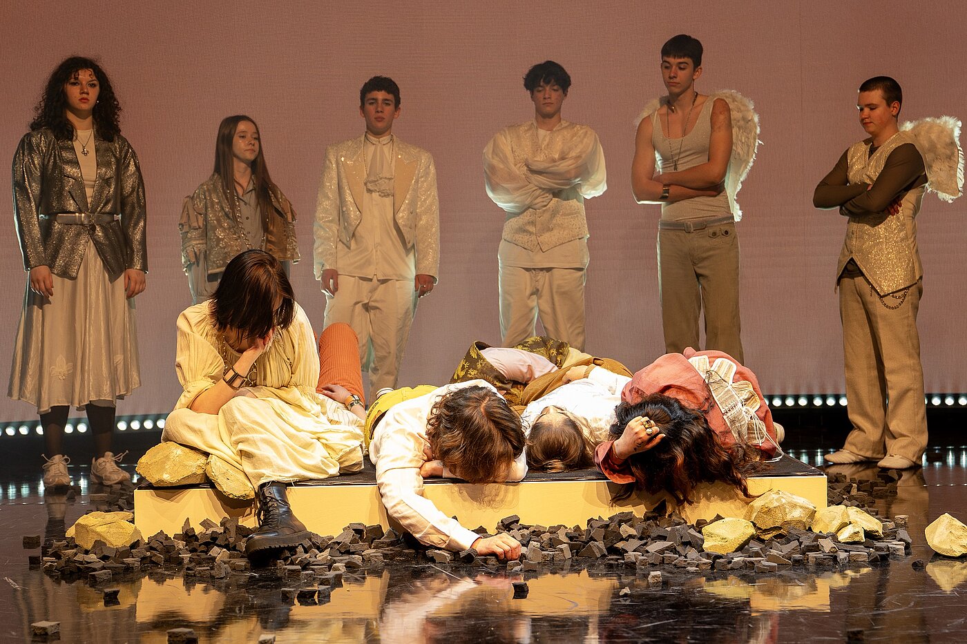 20 junge Erwachsene der BBS Haarentor und des Bildungszentrums für Technik und Gestaltung zeigen Momente des Erwachsenwerdens. Dabei werfen sie einen Blick in die Antike: Der Vater-Sohn-Konflikt aus der Sage von Dädalos und Ikaros wird in die Luft gewirbelt. Der Götterbote Hermes tritt in vielfältiger Gestalt auf und liefert jede Menge nicht bestellter Pakete. »Tschüss Kindheit« sagen sie und stoßen sich vom grauen Stein ab. Sie beginnen mit unbekannten Flügeln zu schlagen: Richtung Sonne, immer weiter, immer höher. Ein Absturz scheint nicht unwahrscheinlich, doch viel größer als die Angst ist die Lust auf Sonne im Leben und einen weiten Horizont.