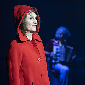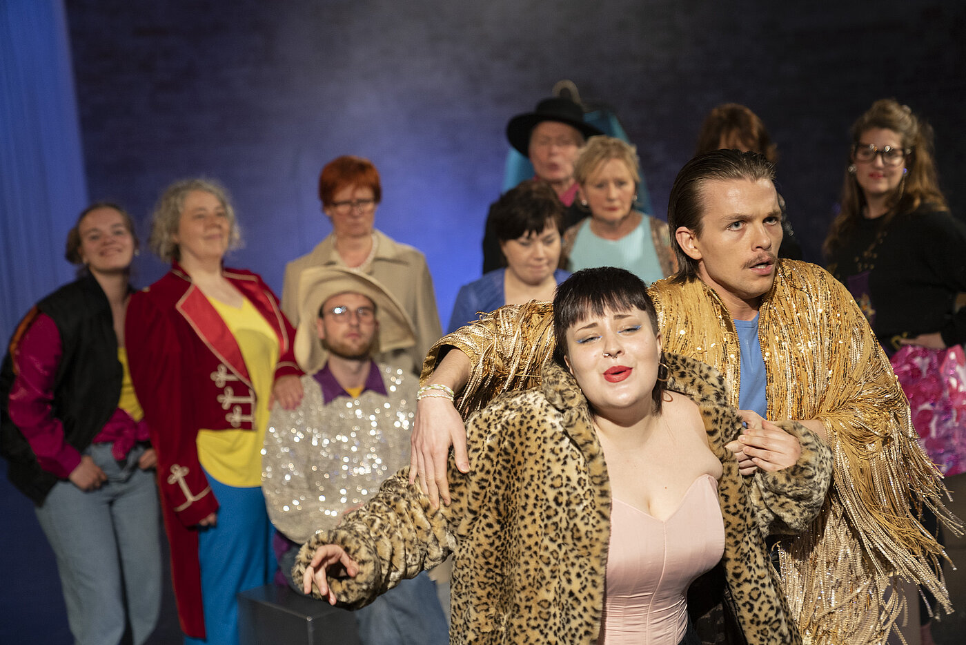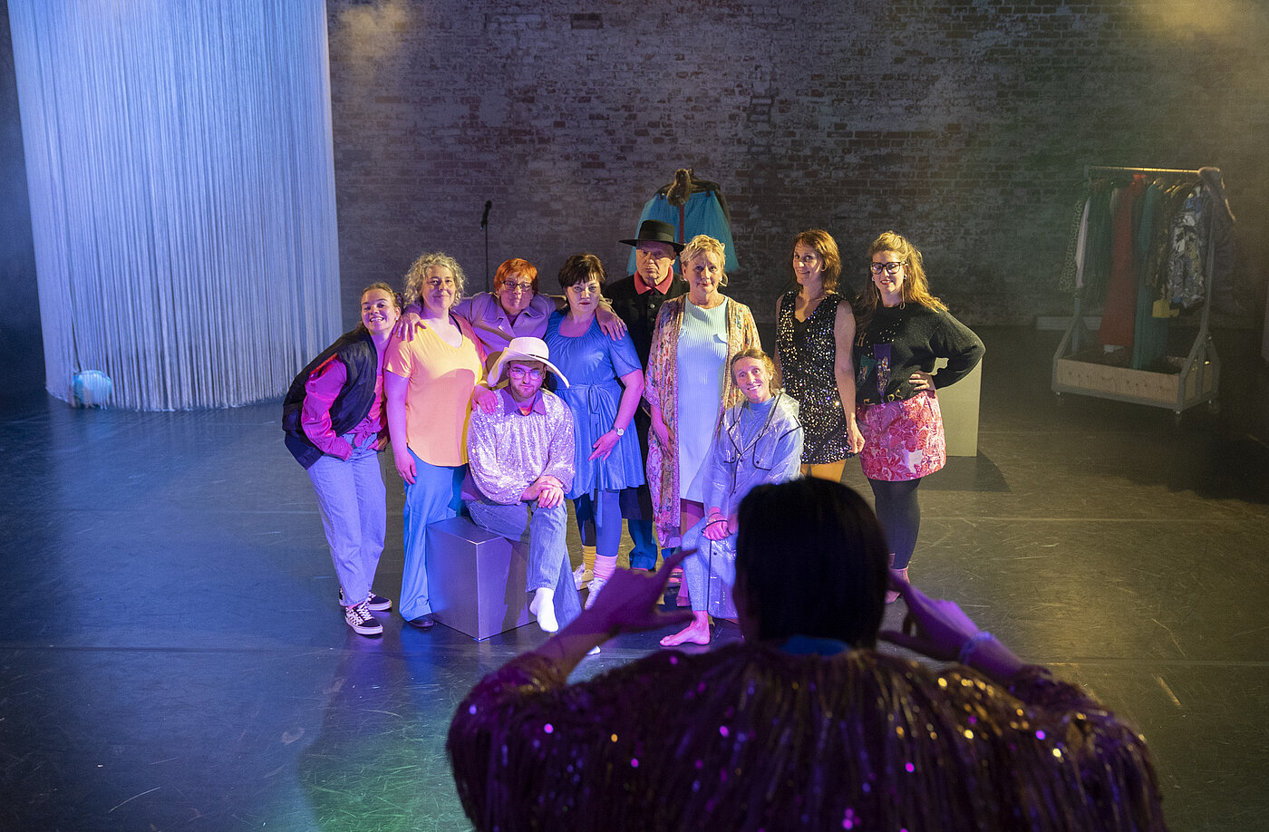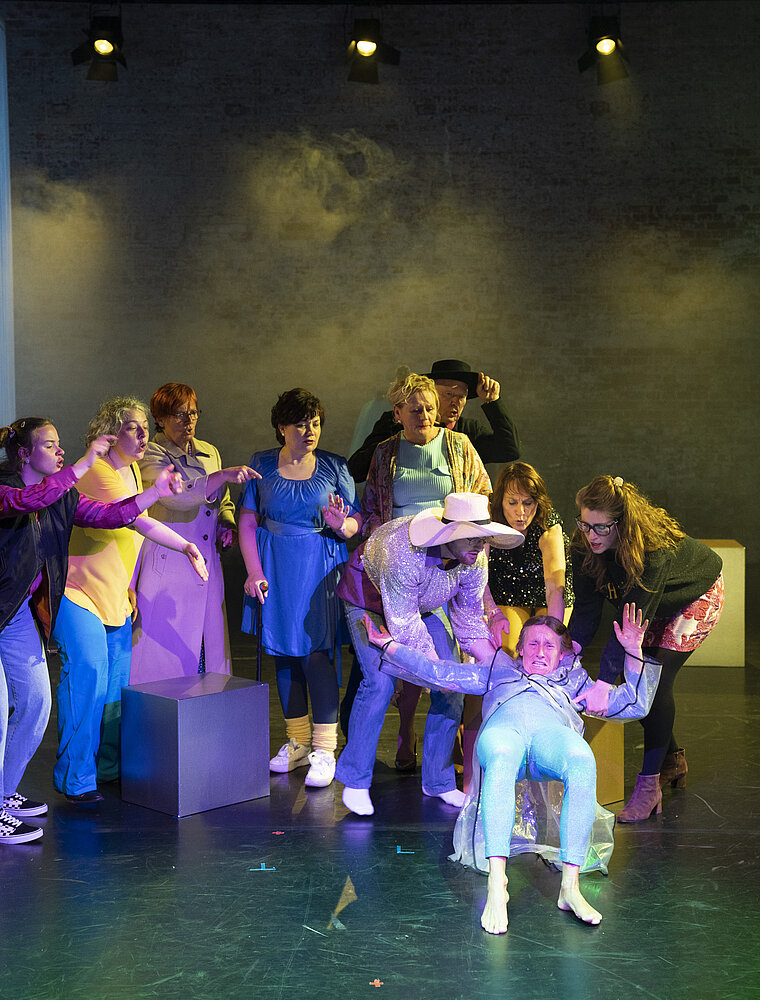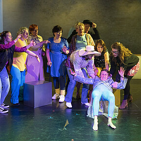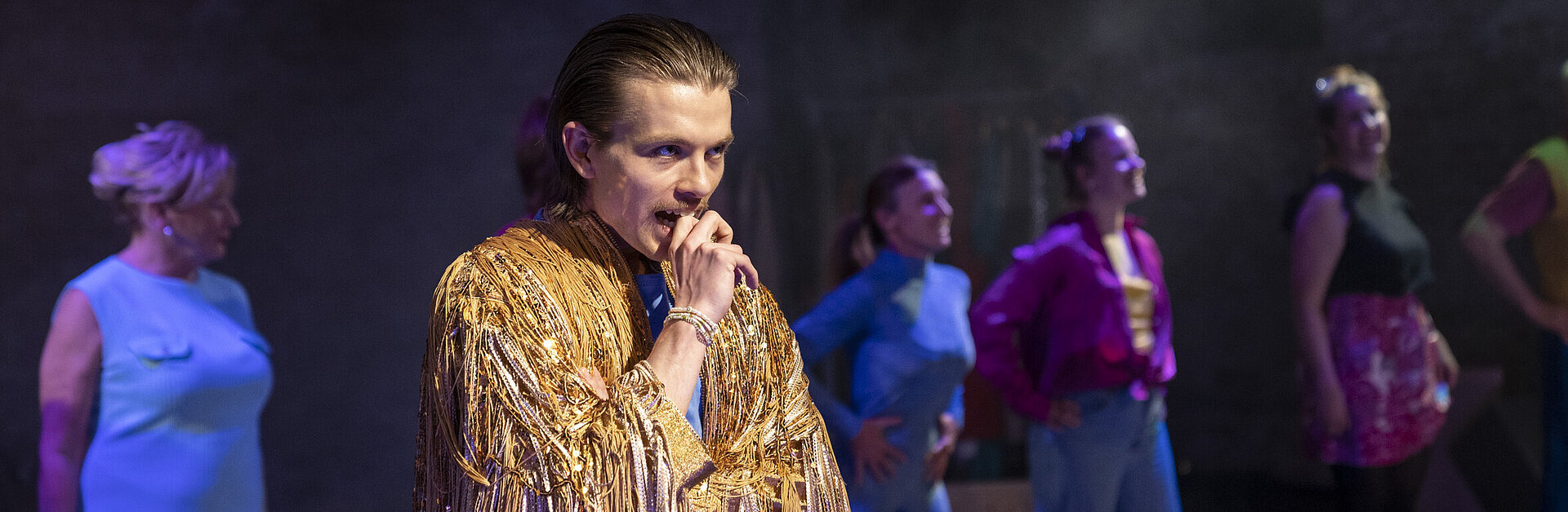 Die selbst konstruierte „Show deines Lebens", die sich im Glitzergewand präsentiert, beschäftigt sich mit der Frage nach Veränderbarkeit durch Mut zum Hinschauen, Träume, visionäres Denken und Aufbruchsgeist.